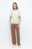 Трикотажные брюки с эластичным поясом, изготовленные из легкого хлопка с рельефной текстурой, дарят ощущение комфорта и легкости. Имитация застежки и складки спереди придают изделию свободный силуэт. В сочетании с рубашкой-поло из этой коллекции, вы создадите стильный образ для теплых летних дней.