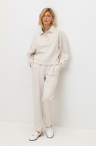 Брюки прямого кроя с защипами изготовлены из высококачественного трикотажного полотна DOUBLE FACE с добавлением спандекса. Ткань прошла каучуковую обработку, что придает ей легкость и шелковистую текстуру. Прямой крой акцентирует силуэт, формируя элегантный классический образ. Боковые карманы добавляют изделию практичности.