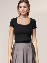 Базовый джемпер с короткими рукавами и воротником-стойкой из плотного однотонного трикотажа супрем с добавлением спандекса.