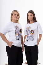 Удлиненная футболка из лёгкого набивного трикотажа супрем. Свободные рукава со спущенной линией плеча создают объём и свободный силуэт.