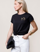 Футболка прямого силуэта из высококачественного гребенного хлопка с добавлением эластана. Нежная и струящаяся фактура полотна за счет специальной обработки soft touch дает ощущение комфорта в жаркие летние дни. Мягкий на ощупь принт выполнен из водных красок, что обеспечивает устойчивость к многократным стиркам.