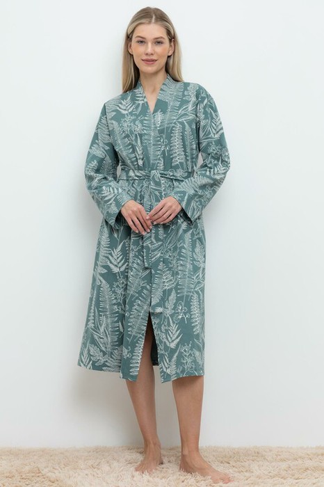 Уютный легкий халат из набивного трикотажа на запах с длинными рукавами. В боковых швах два удобных кармана. С помощью пояса можно регулировать посадку и силуэт. Гладкий материал приятен к телу и позволяет коже дышать.