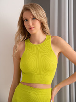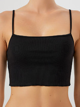 Базовым элементом гардероба является топ из эластичного трикотажа в рубчик. Широкое плечо и высокий вырез делают изделие комфортным и универсальным в носке.