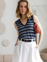 Vilatte Топ из тонкого жаккарда D39.345 синий-белый