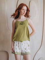 Легкий комплект для комфортного сна и отдыха из трикотажного полотна с эффектом меланжа. Футболка с принтом и спущенной линией плеча комфортно садится по фигуре.  Брюки с эластичными манжетами с боковыми карманами. Круглый шнур позволяет регулировать посадку. Гладкий материал приятен к телу и позволяет коже дышать.