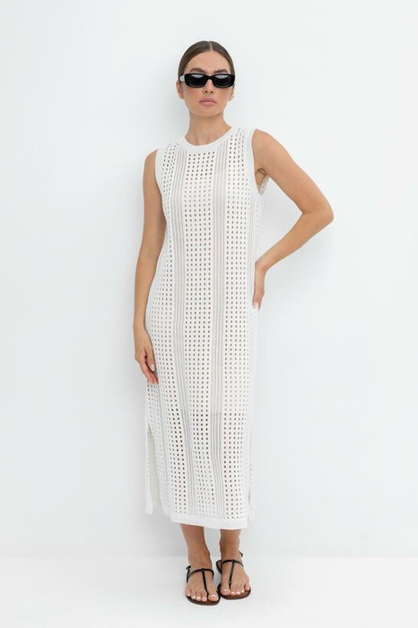 Вязаное ажурное платье. Состав 50% хлопок, 50% акрил. Благодаря акрилу в составе изделие не пилингуется. В комплекте внутреннее платье из бифлекса.
