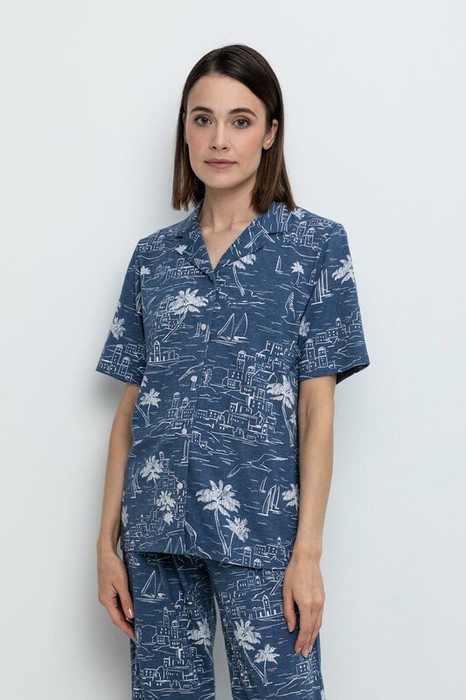 Very Neat рубашка жен Е 30083/джинсовый,морской пейзаж