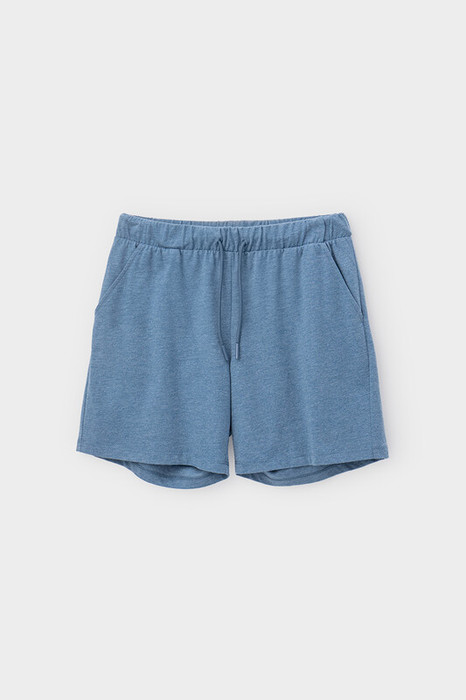 Комфортные шорты с карманами по бокам из меланжевого  хлопка. Мягкий пояс на резинке регулируется с помощью шнурка.