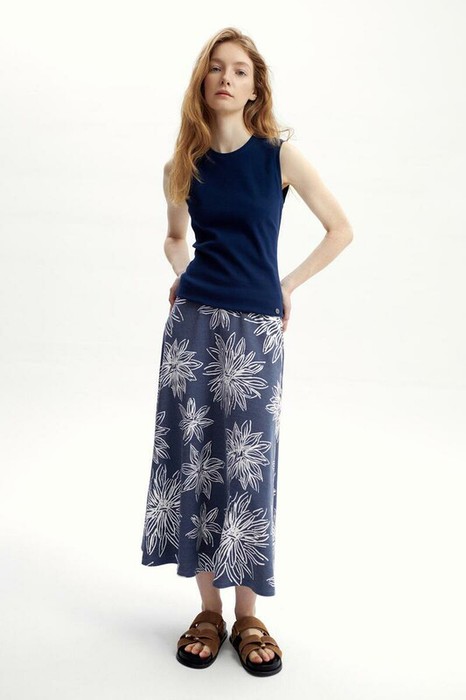 Very Neat юбка жен ЕВТ 7029/синий,крупные астры