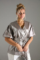 Укороченная трикотажная куртка на молнии с карманами и кулиской по низу. Произведена из мягкого набивного трикотажного футера. Спущенные рукава и манжеты добавляют объем.