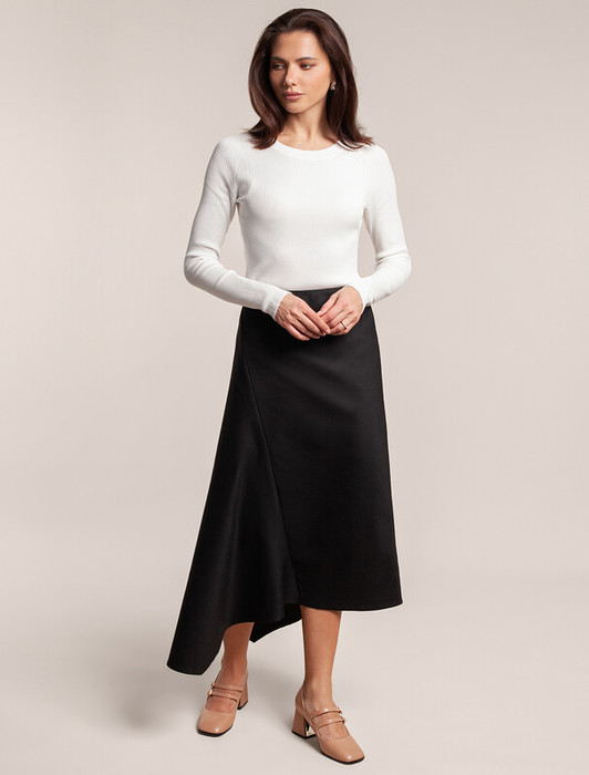 Юбка ассиметричного кроя выполнена из плотной эластичной хлопковой ткани с нейлоном. Пояс с молнией на талии. Трендовый ассиметричный крой вносит изюминку в строгую классику, придавая женственности силуэту. Плотная ткань хорошо держит форму в течении всего дня, сохраняя безупречный вид.