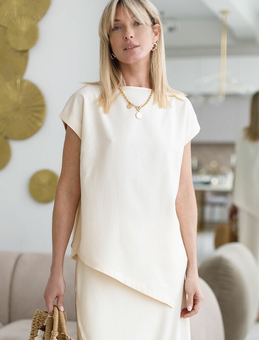 Vilatte Ассиметричный топ из плотного лиоцелла D23.058 кокосово-молочный
