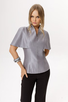 Укороченная блузка с пышными рукавами-фонариками выполнена из легкого хлопкового поплина. Супатная застежка на пуговицы из натурального перламутра. Внизу кулиса с лентами из основного полотна. В изделии будет комфортно, даже в самое жаркое время года. Подходит для любой фигуры. Сочетается в костюме с кюлотами D24.233 и юбкой D26.179
