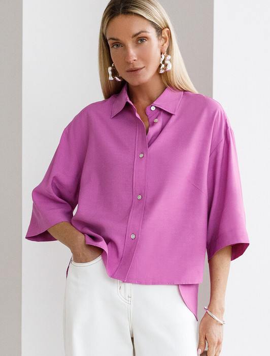 Летящая блузка с отложным воротником выполнена из премиальной вискозы и лиоцелла. Мягкий фактурный материал струится по телу. Вискоза обеспечивает отличную воздухопроницаемость и поддерживает комфортный микроклимат. Модель дополнена пуговицами из натурального перламутра, на спинке изделия металлический логотип бренда. Отлично впишется в нестрогий офисный дресс-код или в расслабленном повседневном образе с джинсами и юбками.