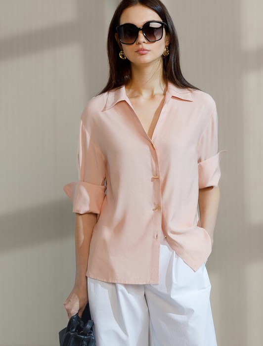 Vilatte Блузка с широкими манжетами из вискозы с лиоцеллом D29.346 пудровый