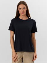 Блузка с короткими руквами черного цвета из струящегося плотного сатина создана для ценительниц комфорта и элегантности. Материал отличается высокой плотностью, что делает блузку устойчивой к износу и сохраняет аккуратный внешний вид даже при длительном использовании. Струящаяся ткань элегантно ложится по фигуре, подчеркивая достоинства силуэта без лишней утяжеленности, в тоже время приятно ощущается на теле.