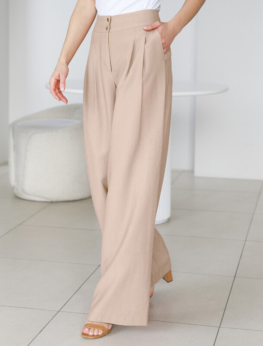 27.03 Vilatte Брюки-палаццо из плотного лиоцелла D24.267 светло-бежевый