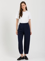 Брюки-палаццо выполнены из костюмной ткани. Свободная модель дополнена карманами и поясом на резинке сзади. Посадка на талии и заутюженные стрелки визуально удлиняют ноги и вытягивают силуэт. Идеальный вариант для офисного дресс кода или в повседневный классический стиль.