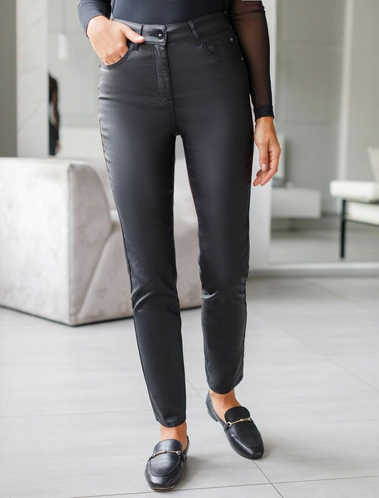 Совместные покупки Курган Женская одежда Брюки — Vilatte Брюки слим из эластичного хлопка с покрытием под кожу D24.273 черный