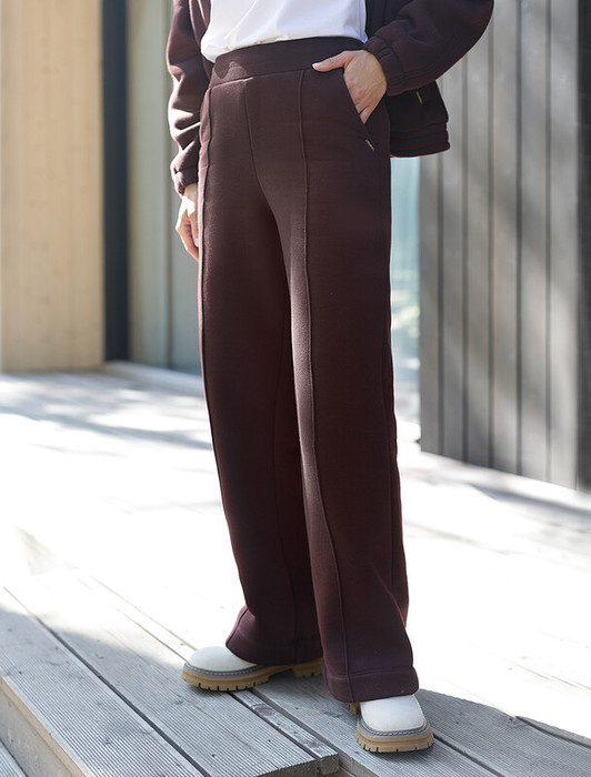 Теплые брюки прямого кроя с удобным поясом на резинке и карманами по бокам выполнены из премиального футера-трехнитки. Наличие эластана в составе гарантирует комфорт и долговечность изделия, материал хорошо пропускает воздух, позволяя телу дышать, а мягкий начес обеспечивает дополнительное тепло и комфорт в прохладную погоду.