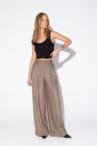 Универсальная модель для базового гардероба. Прямой свободный крой по всей длине создает сдержанный силуэт, идеальный для офиса и повседневной носки. Плотный хлопок с эффектом кожи обеспечивает комфорт и элегантный внешний вид. Классическая высота пояса  гарантирует удобство, а минималистичный дизайн делает эти брюки отличной основой для деловых образов. Сочетайте с рубашками и жакетами для офиса или с простыми топами для повседневного стиля. Практичный материал сохраняет форму и не требует особого ухода. Коричневый цвет легко впишется в любой гардероб.