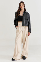 Совместные покупки Курган Женская одежда Брюки — Vilatte Брюки-трубы из эластичного хлопка с эффектом кожи D24.277 кофейный