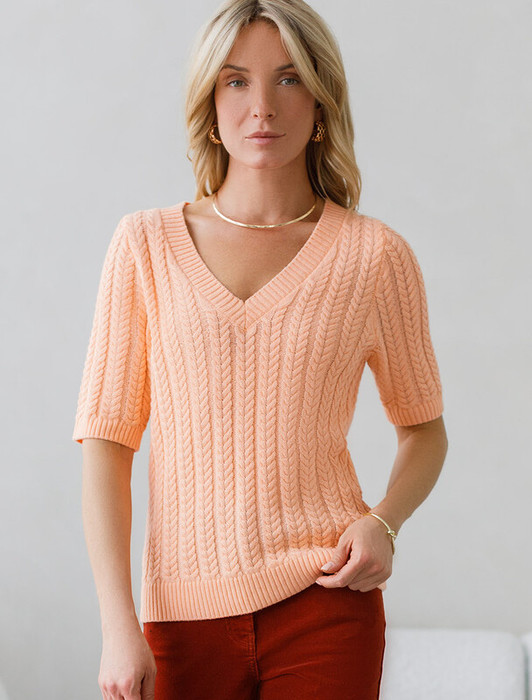 Vilatte Джемпер фактурной вязки из хлопка с кашемиром D39.349 персиковый