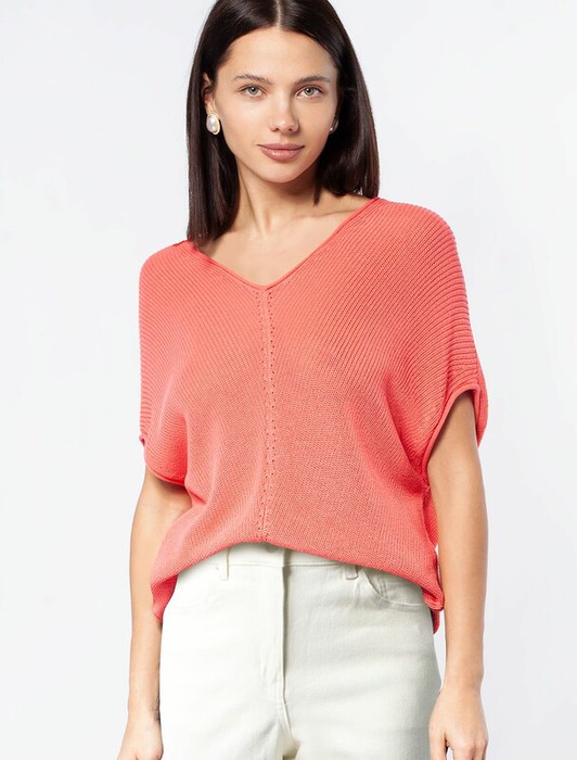 Vilatte Джемпер из гладкой вискозы с лиоцеллом D33.008 коралл
