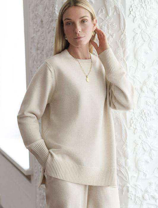 Джемпер с круглым воротом выполнен из мягкой меланжевой пряжи с кашемиром. Лаконичная модель свободного силуэта дополнена боковыми разрезами. Мягкая пряжа очень приятная к телу, поддержит комфорт на протяжении всего дня. Сочетается в костюме с брюками D38.013, D38.012 и юбкой D36.016