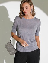 Совместные покупки Курган Женская одежда Джемперы, свитеры, водолазки — Vilatte Джемпер с коротким рукавом тонкой вязки из вискозы с люрексом D39.332 се