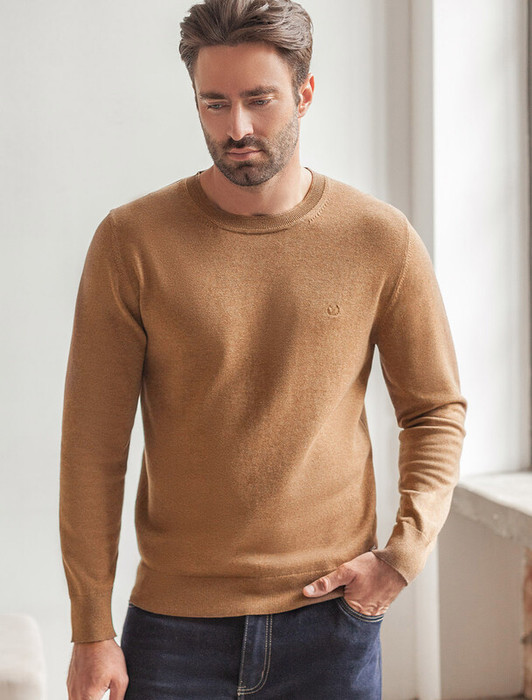Совместные покупки Курган Мужская одежда Джемперы, свитеры — 22.03 Vilatte Джемпер с круглым воротом из хлопка с нейлоном U39.014 коричневый