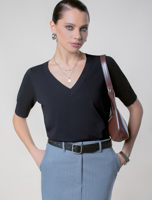 Заказать Vilatte Джемпер тонкой вязки из вискозы с нейлоном D39.355 черный