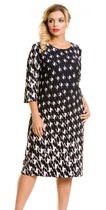 Платье длины мини с воротником поло выполнено из мягкого трикотажа на основе шелковистой эластичной вискозы. Жаккардовое переплетение образует геометрический узор. Застежка на перламутровые пуговицы подчеркивает гладкость пряжи. Контрастный воротник и манжеты делают узор еще более выразительным. Можно сочетать с жакетом D31.388 из жаккардовой коллекции.
