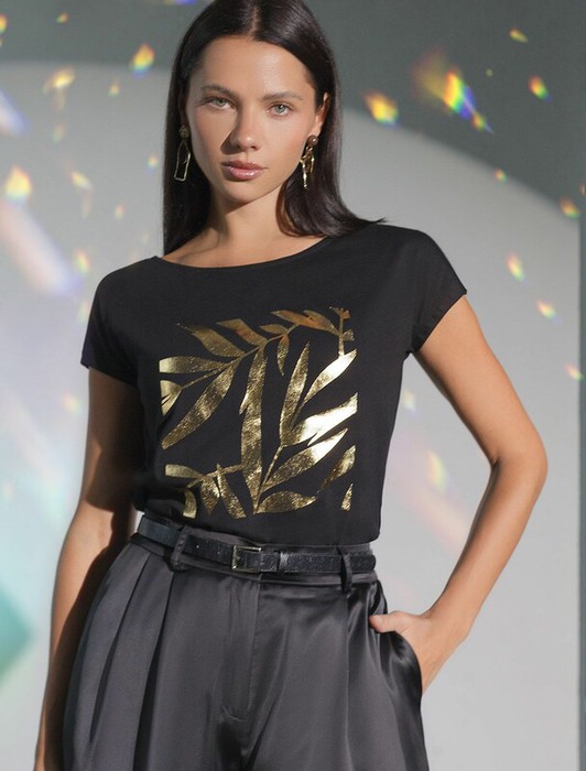 Vilatte Футболка D49.134 черный_листики