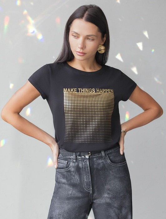 Совместные покупки Курган Женская одежда Футболки — Vilatte Футболка D49.135 черный_things