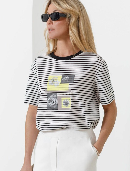 — 22.03 Vilatte Футболка D49.145 белый-черный_flower_power