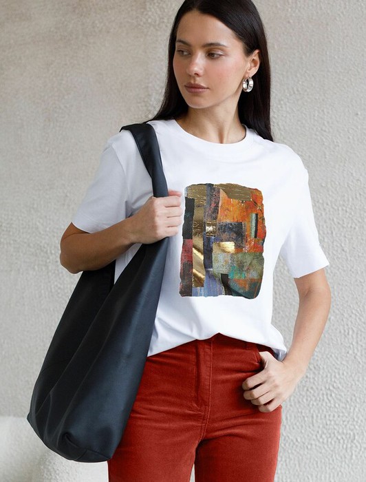 Совместные покупки Курган Женская одежда Футболки — Vilatte Футболка D49.145 белый_абстракция