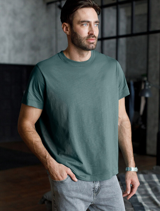 Совместные покупки Курган Мужская одежда Футболки — Vilatte Футболка из фактурного полотна из 100% хлопка U49.040 полынь