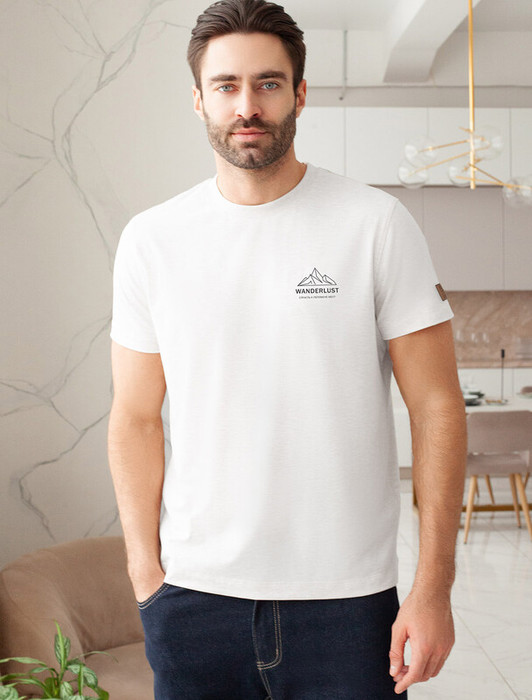 Совместные покупки Курган Мужская одежда Футболки — Vilatte Футболка из премиального хлопка с авторским принтом U49.045 белый_wander