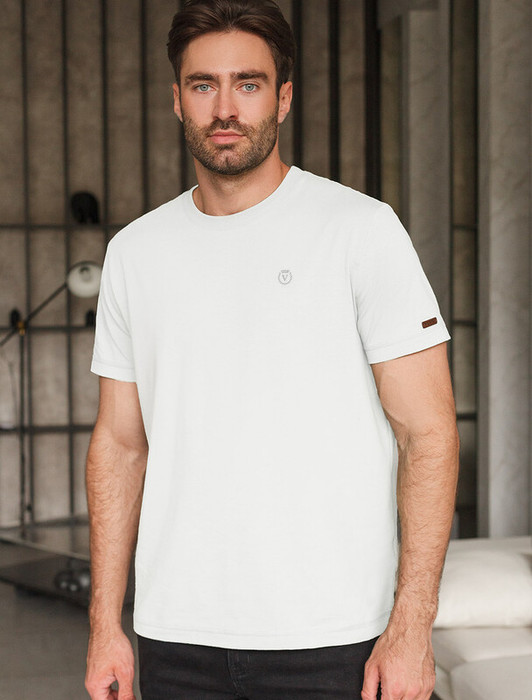 Однотонная футболка выполнена в минималистичном стиле, дополнена аккуратной вышивкой на груди в виде буквы V в тон изделия, а так нашивкой на рукаве из эко-кожи  с логотипом VILATTE. Подходит как классический вариант для работы в офисе под пиджак, так и для повседневной носки или занятий спортом. Мягкая ткань приятна к телу, не вызывает дискомфорта и идеально подходит для дома или летних прогулок благодаря короткому рукаву.