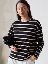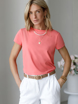 Футболка выполнена из трикотажа в широкий рубчик. Базовая модель с круглым вырезом и рукавом до локтя. Эластичный хлопковый трикотаж сидит по фигуре, не сковывает движений и очень комфортный в носке. Фактура вертикальных полос визуально стройнит и вытягивает силуэт. Базовое изделие хорошо впишется в любой гардероб. Идеально подходит для многослойных образов в базовый гардероб.