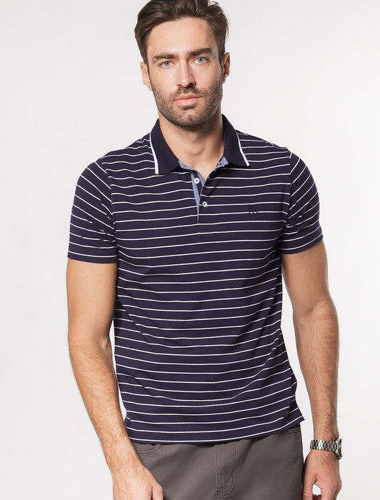 Vilatte Футболка-Поло из премиального хлопка с эластаном U49.025 синий-белый