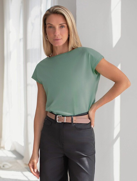Совместные покупки Курган Женская одежда Футболки — Vilatte Футболка с цельнокроеным рукавом D49.088 св.оливковый