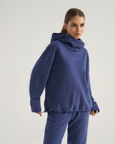 Худи на двухсторонней молнии выполнено из бархатистого велюра. Модель дополнена резинкой по низу и боковыми карманами. Легкий и мягкий материал с матовой фактурой придает изделию нежность и комфорт. Хорошо держит тепло и форму – идеальное решение для домашнего отдыха. Сочетается в костюме с брюками D44.117