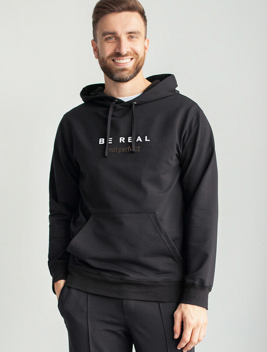 Совместные покупки Курган Мужская одежда Толстовки — Vilatte Худи из эластичного футера-двухнитки с принтом U49.015 черный