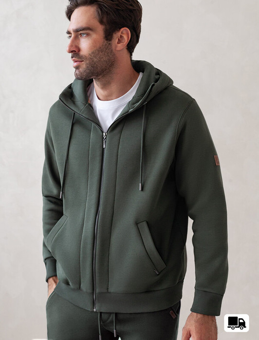 Vilatte Худи на молнии из премиального футера трехнитки с начесом U49.037 хаки