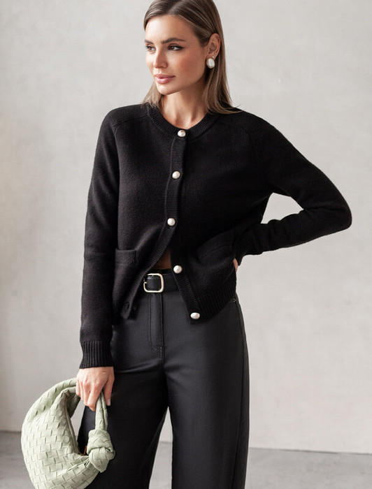 Совместные покупки Курган Женская одежда Кофты, кардиганы — Vilatte Кардиган из пряжи с кашемиром D31.141 черный
