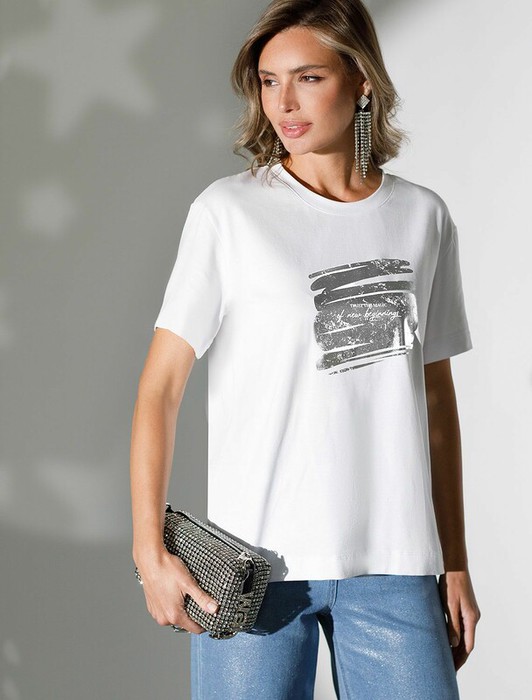 Совместные покупки Курган Женская одежда Футболки — Vilatte Нарядная футболка с принтом фольгой из премиального хлопка с эластаном D