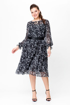 Элегантное платье прямого кроя черного цвета выполнено из воздушной сетчатой ткани с прозрачными рукавами, придающими образу лёгкую игривость. Мягкая вискозная подкладка обеспечивает комфорт, сохраняя при этом эффект полупрозрачности. Универсальный черный цвет делает платье идеальным для базового гардероба.
