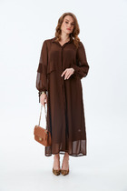 Элегантное платье прямого кроя черного цвета выполнено из воздушной сетчатой ткани с прозрачными рукавами, придающими образу лёгкую игривость. Мягкая вискозная подкладка обеспечивает комфорт, сохраняя при этом эффект полупрозрачности. Универсальный черный цвет делает платье идеальным для базового гардероба.